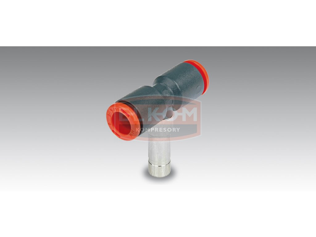 Nástrčný T-kus pro šroubení s nástrčným systémen a pro plastové hadičky 10 mm.